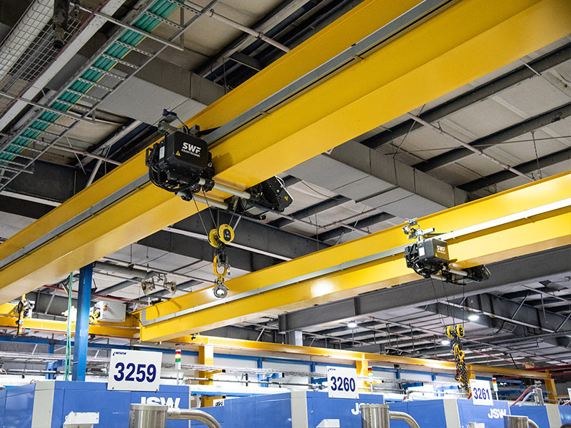 Minimal lateral hook movement, low load swing and smooth load movements controlled by frequency inverters