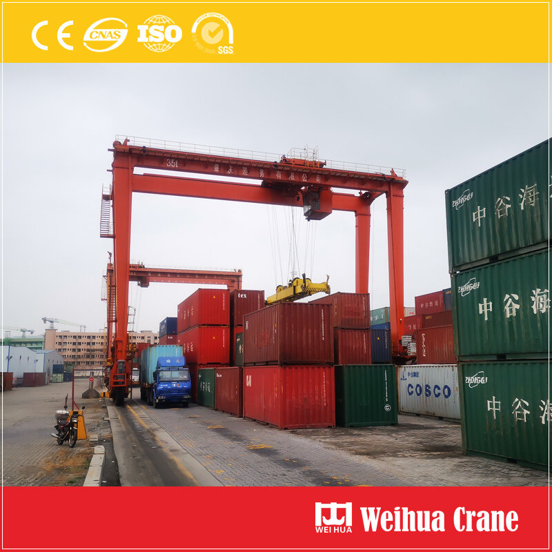 Rubber tyred container gantry crane is usually called RTG for short, which is employed to stack containers in container storage yards. It is flexibly moved by its own rubber tyres for transshipping containers.