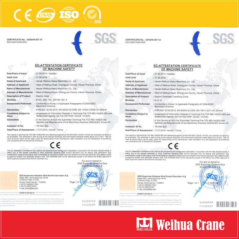 2. Low clearance structure of trolley and reasonable size of hook allowing the crane wide application scope.